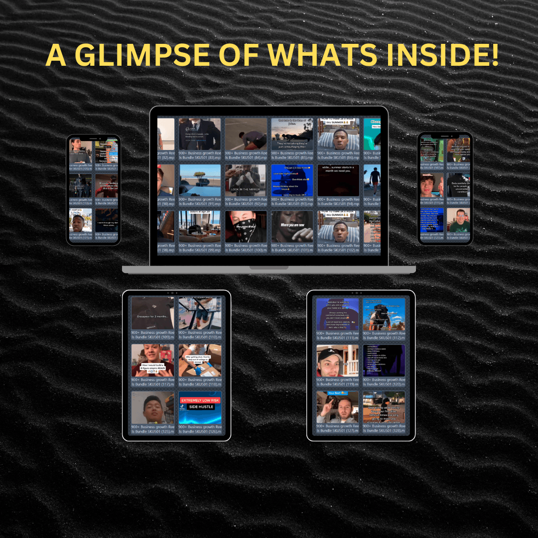 Introducing a one-of-a-kind collection of over 900 motivational reels, expertly curated to inspire, uplift, and empower! This expansive bundle offers a wealth of captivating content, each reel thoughtfully crafted to ignite motivation and drive, designed to seamlessly connect with and energize your audience.